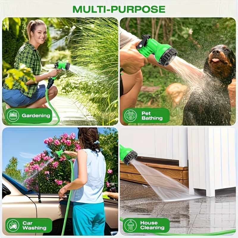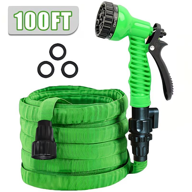 100 Foot Garden Hose Outdoor Cleaning Water Hose Spray, with 7 Function High-Pressure Nozzle, Portable, No Twist, Rust Proof, Light Hose, Suitable for Yard, Car Wash, Lawn, Camper, Easy to Store