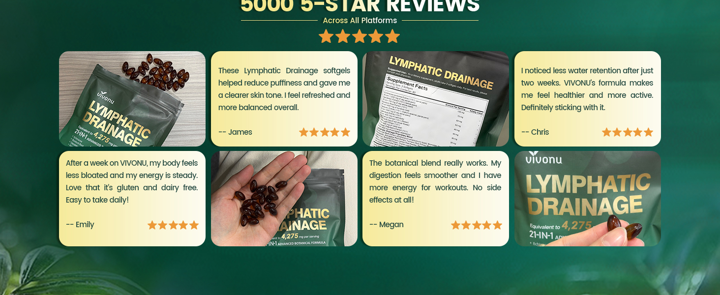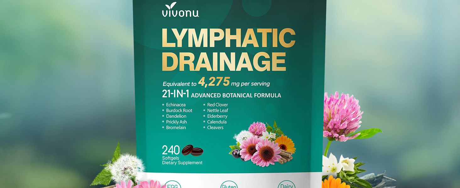Lymphatic Drainage Supplement, 240 Softgels, 4275mg Lymph System Support Supplement for Women & Men, 21-in-1 Herbal Blend with Echinacea, Dandelion, Burdock, Bromelain, Calendula, Turmeric