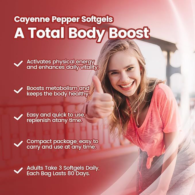 Cayenne Pepper Softgels Supplement, Supports Leg Vein, Heart and Blood Vessel Health
