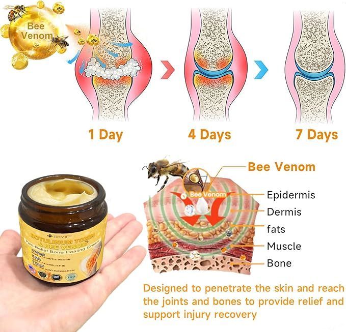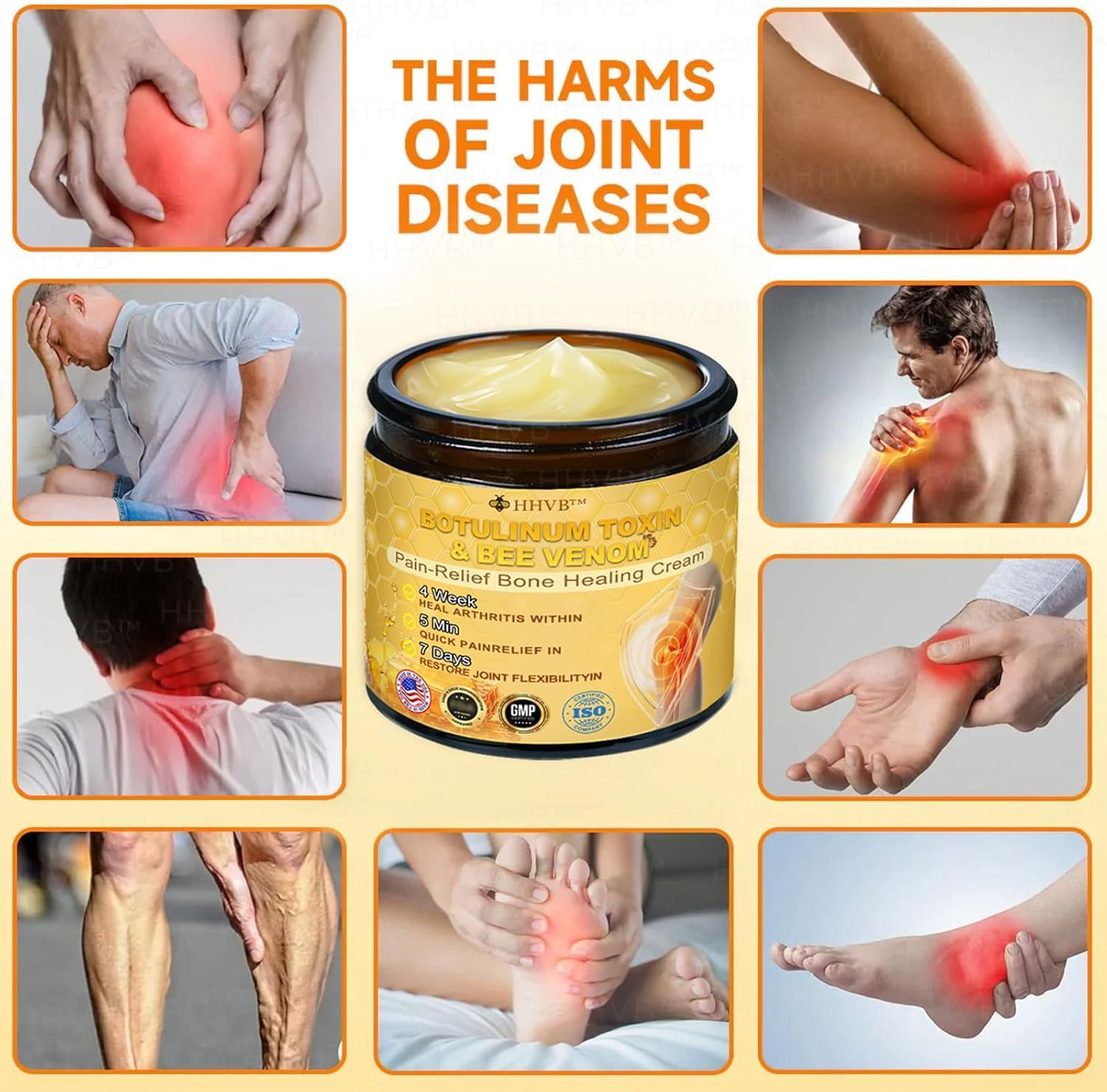 - ✅【Natural Relief for Joints】- Our HHVB Botulinum Toxin & Bee Venom Pain-Relief Bone Healing Cream combines the power of bee venom, honey, and essential oils to soothe aching joints, improve flexibility, relax muscles, and enhance mobility.