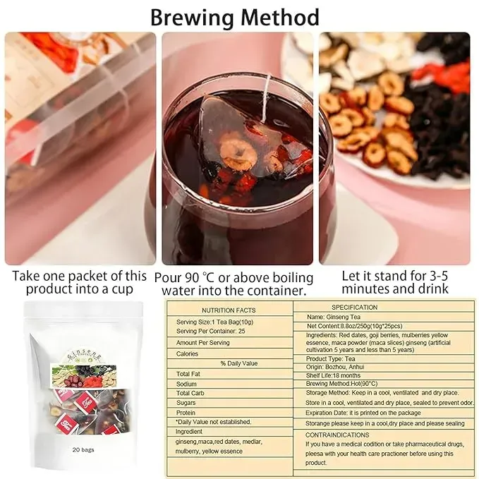 Kidney-nourishing tea, kidney tea formula, ginseng six-treasure tea, organic kidney detox tea, natural Chinese herbal tea suitable for both men and women