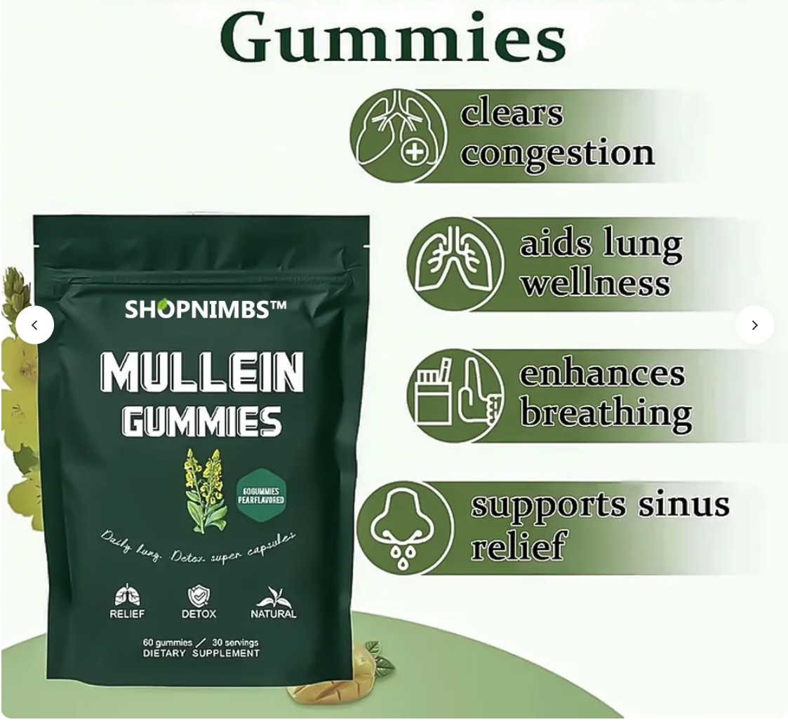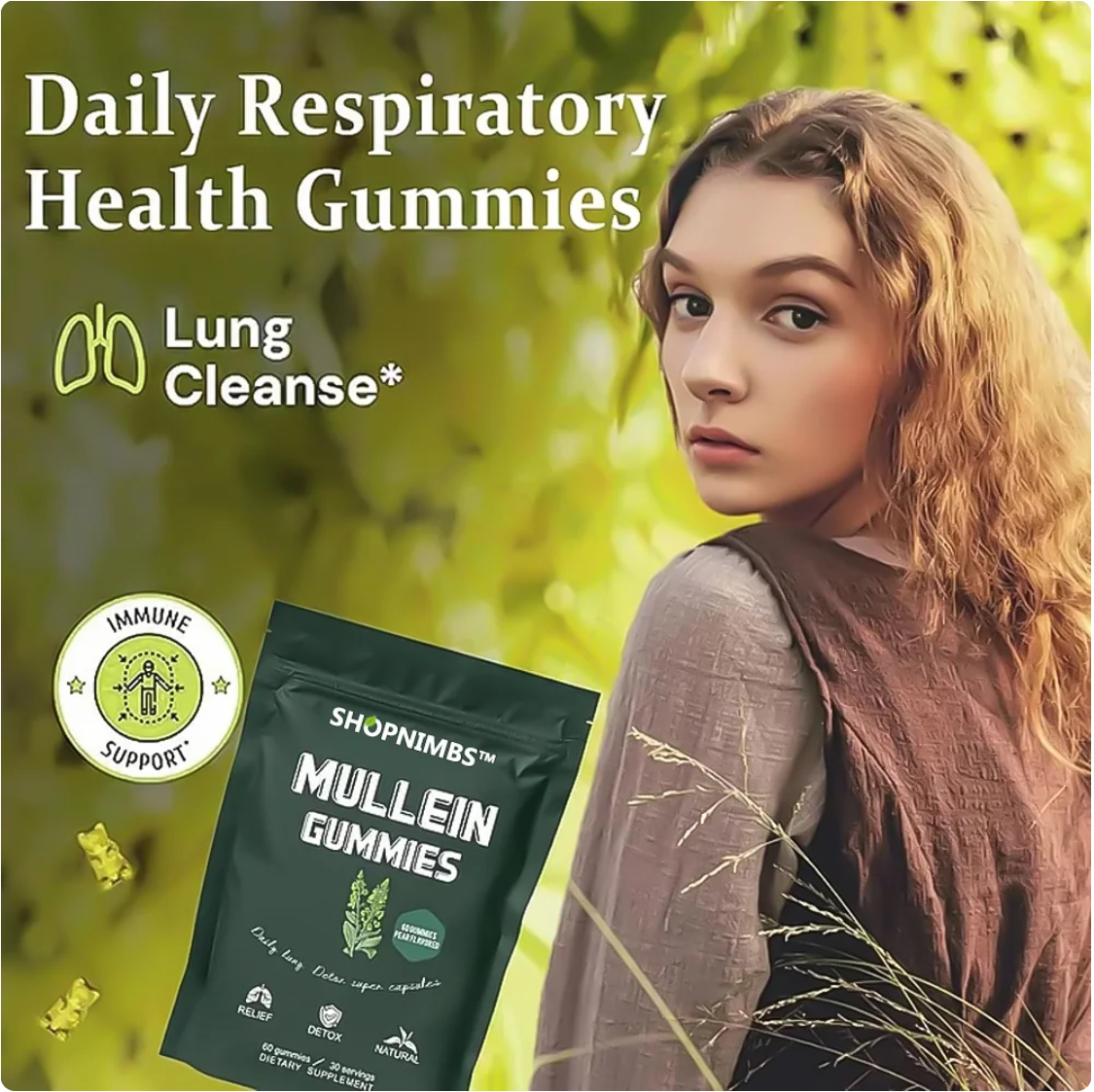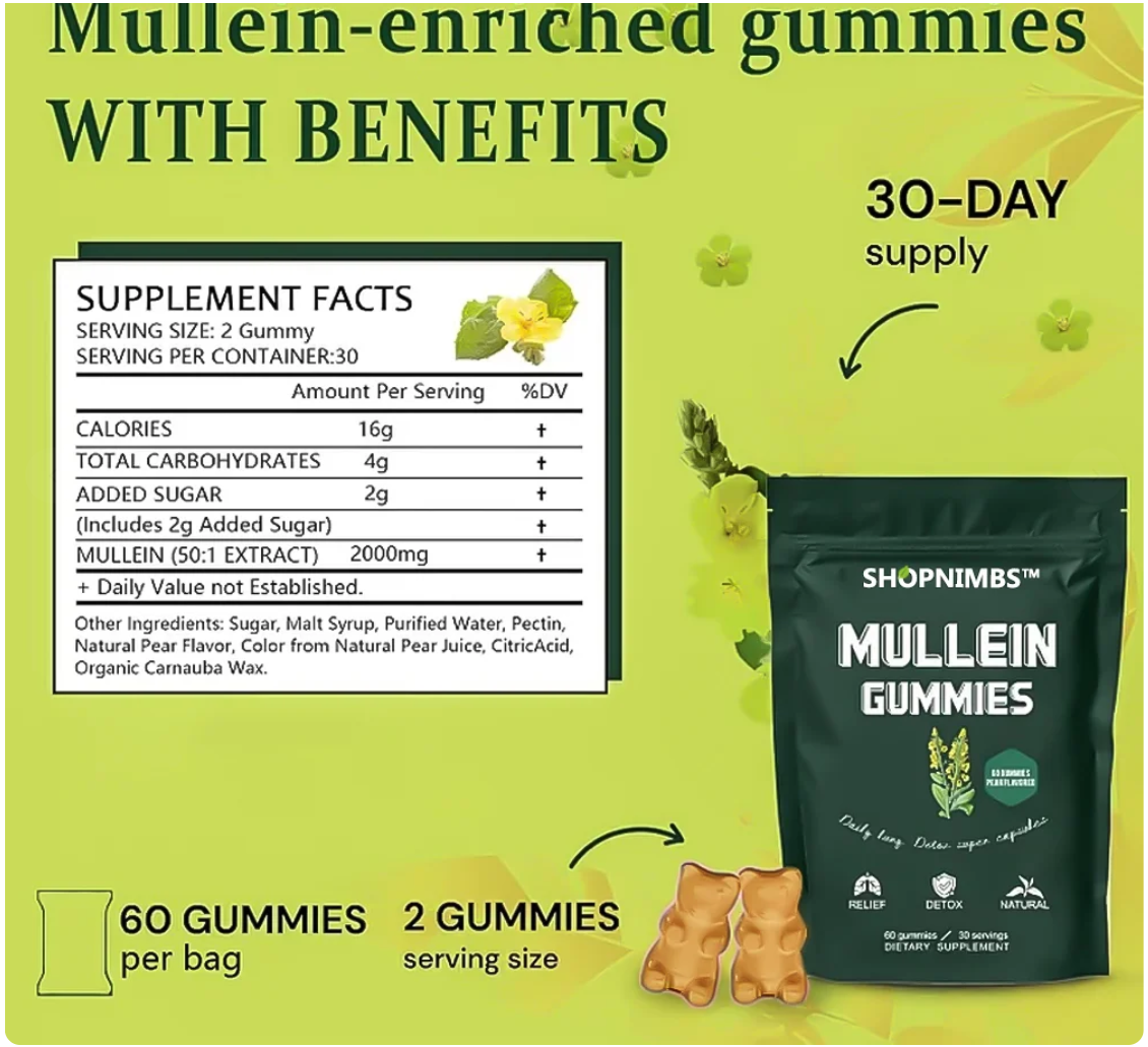 Mullein Gummies for Lung Detox, 2000mg Mullein Leaf Extract for Respiratory Digestive Immune Support w Quercetin, Bromelain, Elderberry Marshmallow, Vegan 60 Gummies