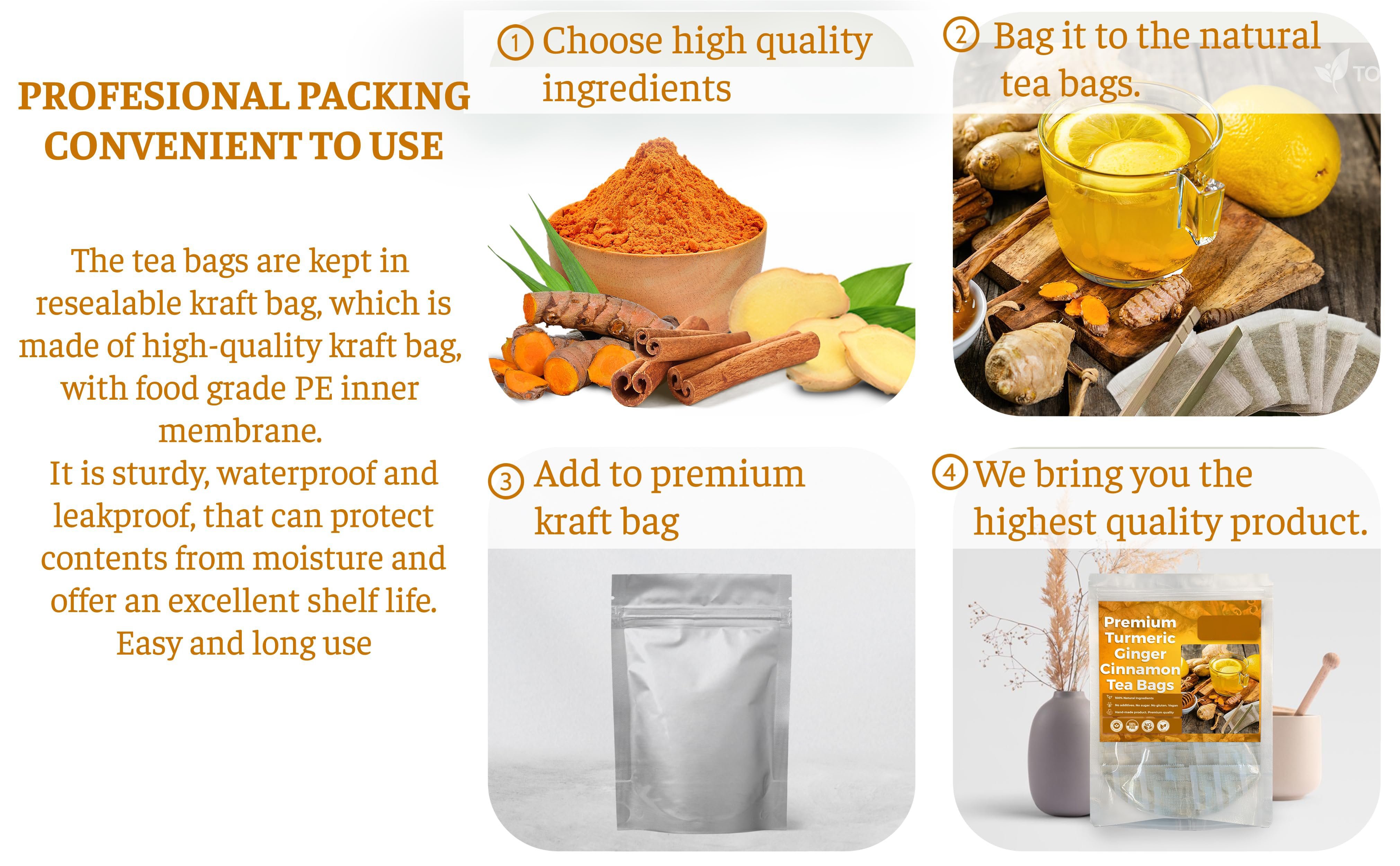 ✅ PROMISE FOR HIGHEST QUALITY PRODUCT: We promise to deliver the highest standard quality products. If you have any questions about our Turmeric, Ginger and Cinnamon Tea Bags, just let us know, we are always happy to answer and appreciate your helpful suggestion