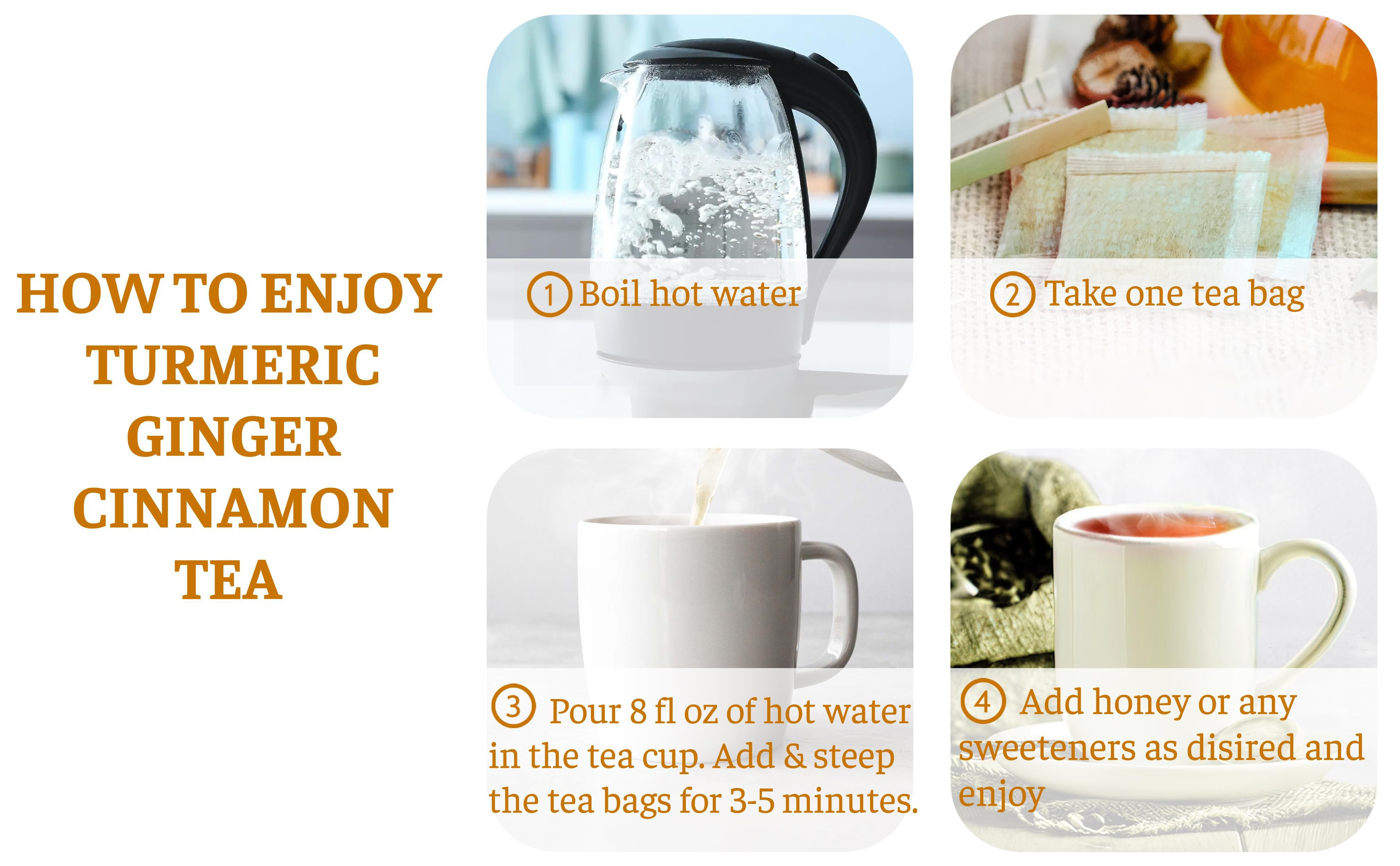 A(⭐⭐⭐⭐⭐): Our tea bags are free from sugar, caffeine, gluten, and artificial colors or flavors. They’re perfect for anyone looking for organic turmeric ginger cinnamon tea that’s safe and natural.