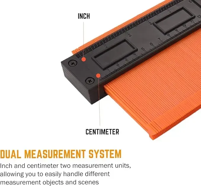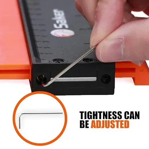 - Adjustable Tightness & Dual Sides Scale Design - No need to worry about too loose or too tight of plastic pins to slide in, especially after being used several times. The tightness of the contour gauge can be adjusted by screwing the 2 screws on the end. With the bonus little allen wrench, you can simply adjust the tightness of plastic pins according to your preferences. The profile gauge tool has Inch & CM scales on both sides, making it easier to measure and record numbers