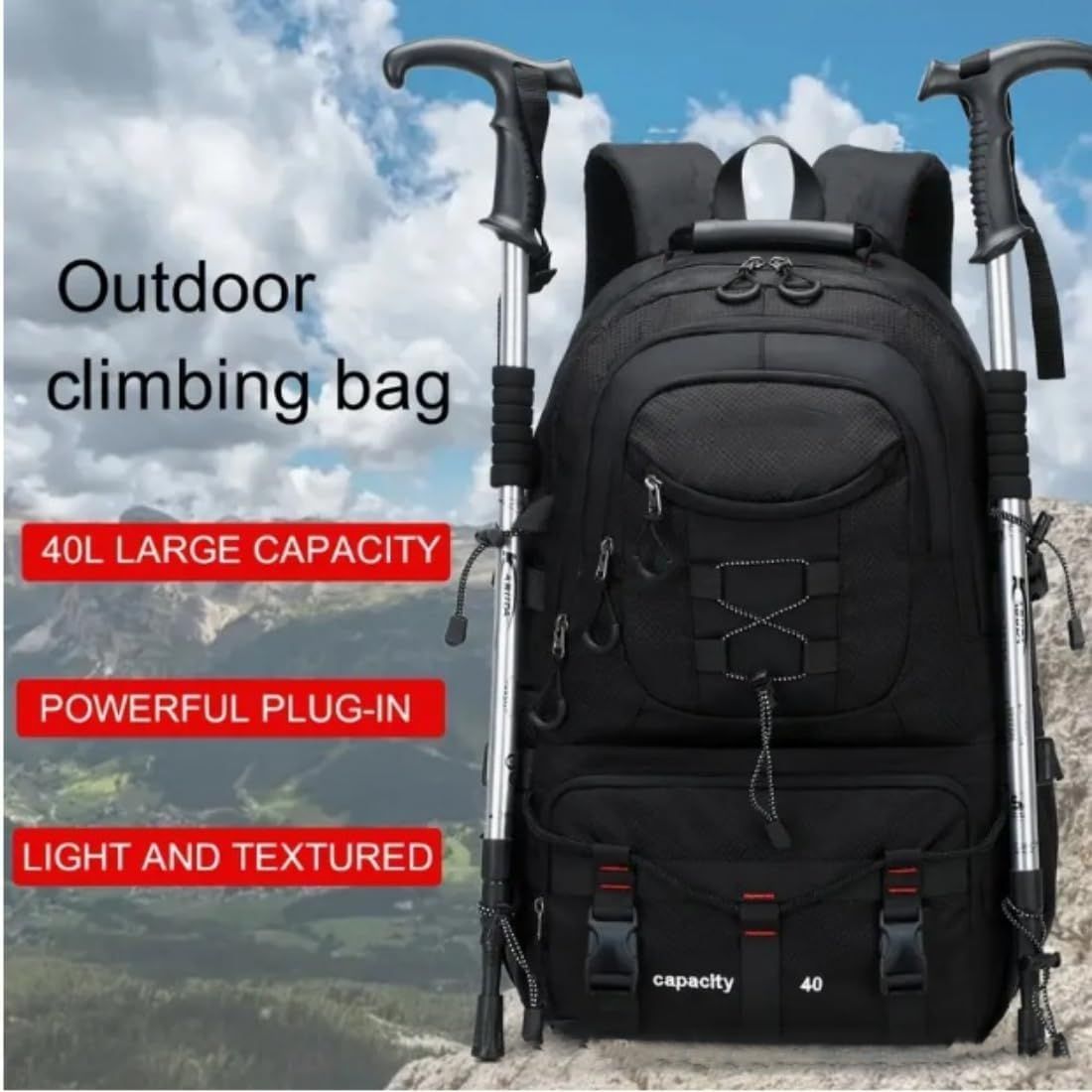 - Side Pockets: Elastic mesh pockets on the side of the mountain climbing backpack for storing water bottles of different sizes.